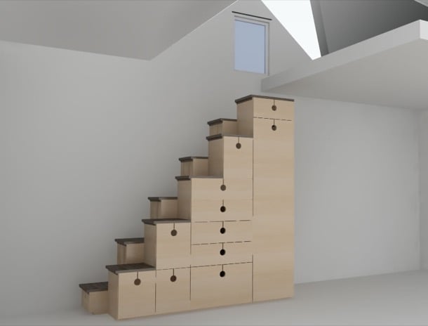La mitad de esta casa está ocupada por la «zona de día». El resto se encuentra más allá de la chimenea,  pues la vivienda Shot-Trot dispone de dos dormitorios. Todo se organiza en una superficie de 81m2, con diversos puntos de entrada, por los extremos y por el centro. Tiene bastante iluminación natural, gracias a sus grandes ventanas, y tejado a dos aguas de fuerte pendiente. Hay que aclarar que el techo del interior de la casa es inclinado, pues la propia cubierta es el límite.
