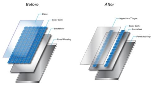 El panel solar que genera electricidad está compuesto por varias células fotovoltaicas empaquetadas juntas. Son muy caras las de silicio cristalino, además de exigirse una alta concentración de estas células para la producción de energía. Con el sistema inventado por Hypersolar, se añade una delgada capa que aumenta el rendimiento en un 300%. Ese cambio reduce el tamaño de los paneles solares, y los hace más baratos.