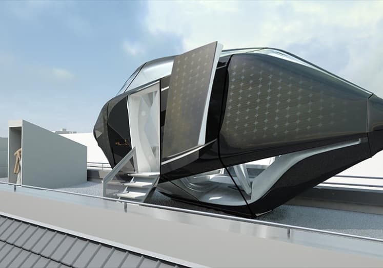 La cápsula habitable Living Roof es una idea de NAU Architects. Esta oficina de arquitectura desarrolló otros proyectos de aires futuristas, y tiene cuatro sedes repartidas entre Europa y los Estados Unidos.