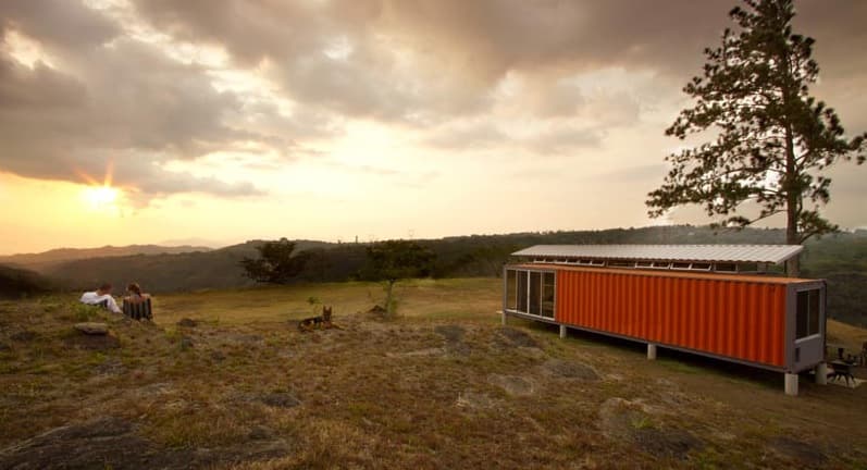 En este blog hemos visto arquitectura en la que se ha buscado el mayor aprovechamiento de los materiales, tanto reciclados como reciclables. Como era de esperar, en esa lista destacan algunos ejemplos de edificios hechos con contenedores de carga. Pero pocos están tan bien planteados -y con un resultado final tan bueno- como esta casa con dos contenedores de 40 pies. Está situada a 20 minutos de la ciudad de San José (Costa Rica).
