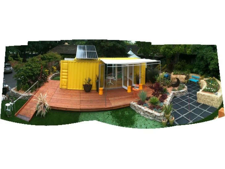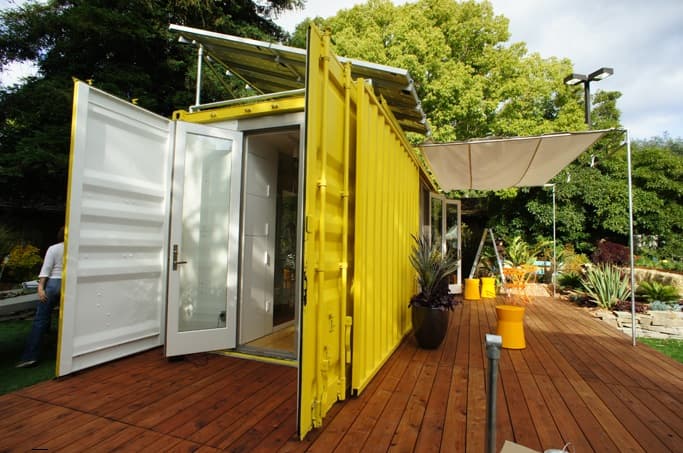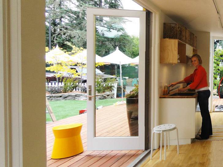 Estas fotografías son de una pequeña casa que apareció en el evento anual de Sunset Idea House. Estaba organizado por la revista Sunset, en Menlo Park (California, EE.UU.). Esta vivienda fue construida por una empresa de Seattle especializada en casas prefabricadas que emplean el contenedor de transporte como módulo constructivo. La casa contenedor exhibida fue la Nomad C192, una construcción que tiene una superficie de apenas 18 metros cuadrados.