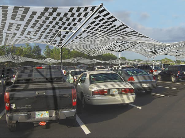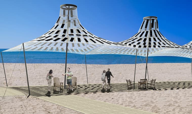 Tensile Solar son estructuras ligeras y modulares que, aparte de dar sombra, generan electricidad. Lo hacen gracias a las células solares adheridas a su superficie. Estas superficies tensadas pueden tener múltiples aplicaciones, desde el toldo para cubrir parte del jardín, patio o terraza de una casa, una zona de aparcamiento de vehículos, para la playa, etc. En definitiva, cualquier lugar que necesite de un espacio protegido del sol. Esa energía luego se puede utilizar para el alumbrado o la recarga de dispositivos móviles. Con el abaratamiento de la tecnología fotovoltaica, estas estructuras solares cada vez serán más comunes en las ciudades.