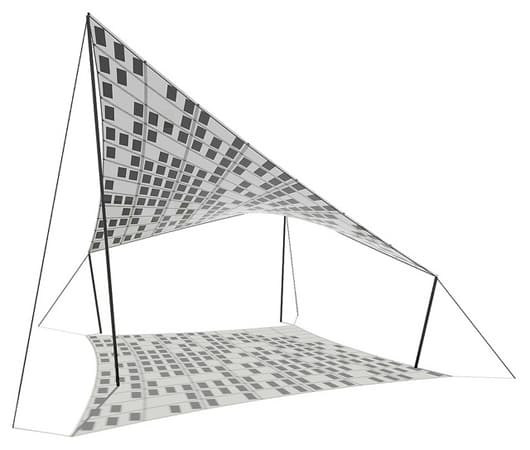 Este producto está basado en una idea cargada de lógica: cualquier estructura expuesta al sol debiera generar electricidad. Tensile Solar es la unión entre la arquitectura textil y la tecnología de láminas fotovoltaicas delgadas y flexibles. Fue creada por la misma compañía (SMIT) de Solar Ivy, aquel fantástico sistema de energía solar que simulaba la hiedra.