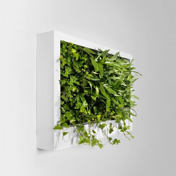 - Greenscreen. Es como un cuadro colgado en la pared, con una pantalla vegetal en su interior. Este producto posee iluminación, tanque de agua, y bomba eléctrica con temporizador. En una de estas pantallas verdes caben alrededor de 35 plantas, sembradas en bolsas de fieltro. Tiene la misma función decorativa que un muro vegetal, absorbiendo también ruido, y limpiando el aire.