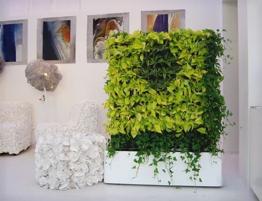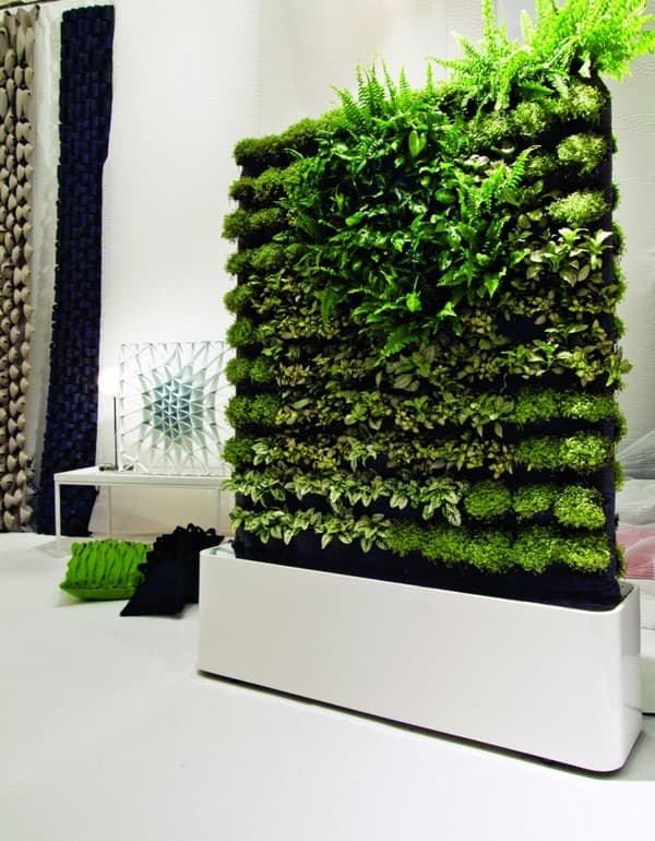 - Mobile plant walls. Es un muro verde con dos caras, que se puede mover de sitio (tiene ruedas). Es la solución idónea para crear una bonita pantalla divisoria de espacios. El diseño de su base es bastante discreto y moderno, y cuenta con sistema de riego automático. Un tanque de 70 litros de agua hace posible que sólo una vez al mes requiera de mantenimiento.