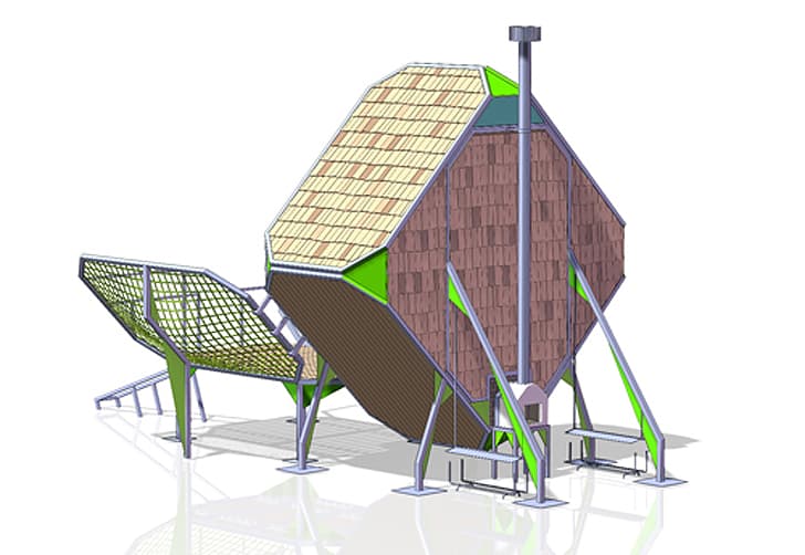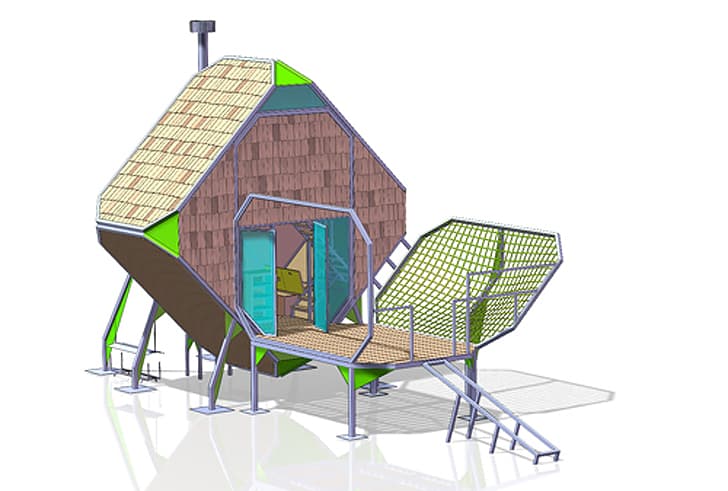 En unos bosques de Lorena (Francia) se implantaron una serie de refugios, proyectados por determinados diseñadores franceses. Un grupo de ellos fue creado por Matali Crasset, llamados casas salvajes ecológicas. El modelo que aparece en este artículo recibió el nombre de Le Nichoir. No es más que una cabaña de madera con una singular estructura de acero.
