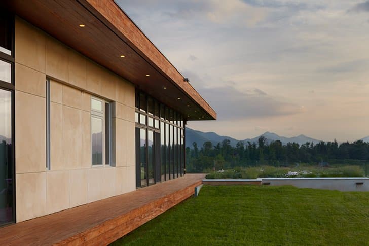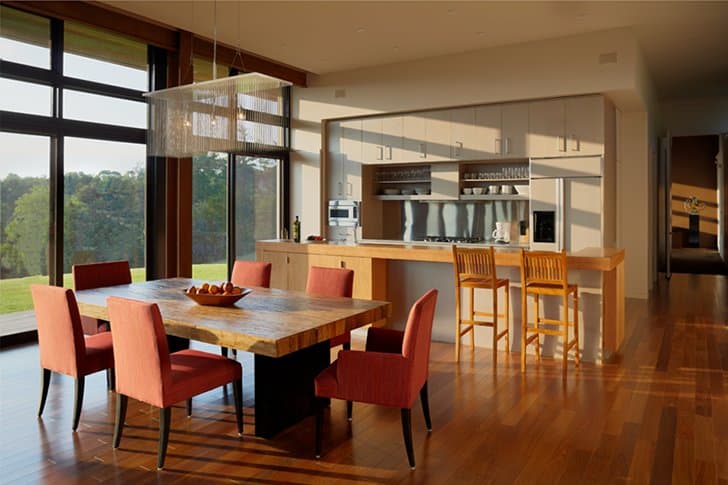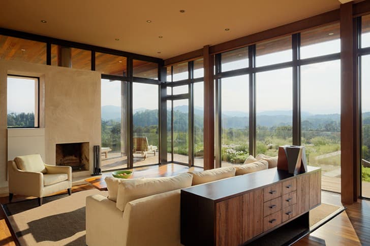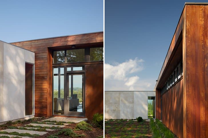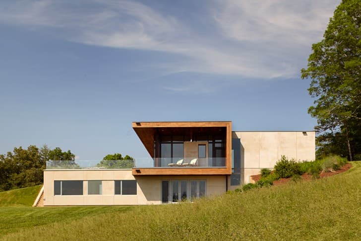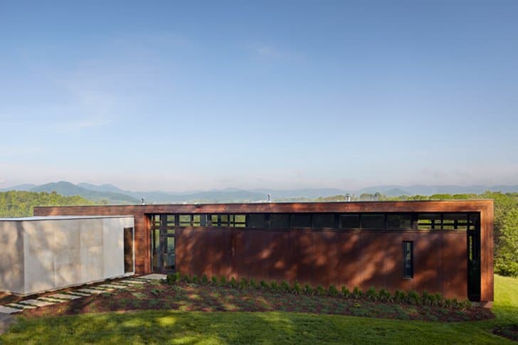 Esta construcción es la Leicester House, y está situada cerca de las montañas Blue Ridge (Carolina del Norte, EE.UU.). El lugar elegido está al borde de una colina boscosa, con muy buenas vistas. Su diseño arquitectónico aprovecha el desnivel del terreno, y ofrece estupendas panorámicas. Es un proyecto digno para haber sido analizado en nuestro blog de Arquitectura y Diseño, pero se ha quedado aquí porque se trata de una casa sostenible. Tiene una interesante lista de características verdes, añadidas tal vez por la etapa de sequía que azotó la región en años anteriores.