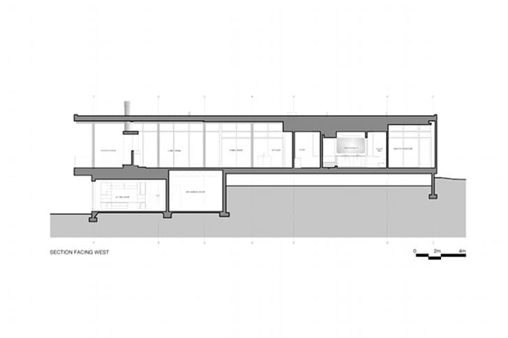 Las cubiertas son planas y verdes, eso hace que se mejore el aislamiento y se reduzca la escorrentía del agua de lluvia. Ese agua es almacenada en dos depósitos de 6.500 litros, que luego es utilizada para el riego de los jardines. La calefacción y refrigeración se realiza por una bomba de calor geotérmica, a pesar de ser una construcción que ha tenido en cuenta el rendimiento pasivo. Los electrodomésticos son eficientes, y la iluminación empleada en toda la casa es de tecnología LED. Para reducir aún más su impacto medioambiental, los propietarios se cuidaron de amueblarla con muebles producidos localmente, con materiales reciclados, y de acabados sin COV (compuestos orgánicos volátiles).