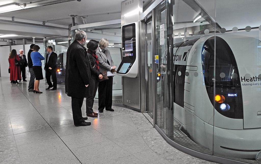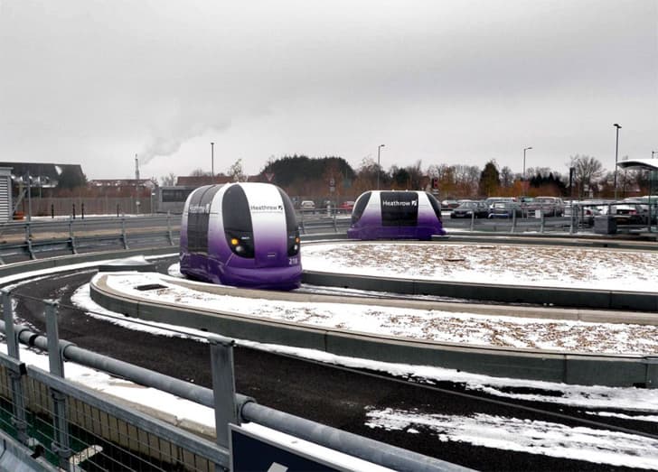Desde Junio del 2011, los dos autobuses diesel que realizaban 216 viajes diarios en el aeropuerto londinense de Heathrow dejaron de funcionar. En su lugar operan 22 vehículos eléctricos, con capacidad para 4 pasajeros cada uno, sin conductor. Circulan completamente automatizados por una vía propia elevada. Estos divertidos y futuristas vehículos son los PODCars, también llamados vehículos PRT.