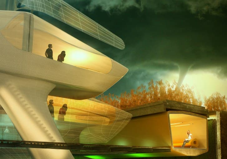 La Tornado Proof House ideada por 10 Design. Es una compañía con un equipo internacional de arquitectos y diseñadores, que tiene oficinas en Hong Kong, Shanghai, Edimburgo, y Denver. Además, están comprometidos en darle un enfoque sostenible a todos sus proyectos.