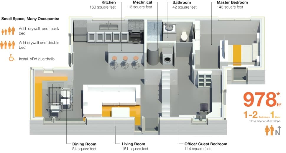RE_home fue la propuesta del equipo de la Universidad de Illinois en Urbana-Champaign para el Solar Decathlon 2011. Es una casa prefabricada que se distingue por ofrecer una solución práctica y rápida para una familia afectada por un desastre natural. Por ese motivo su diseño se compone de dos módulos fácilmente transportables por camión trailer. Pero tampoco hay que olvidar los compromisos de sostenibilidad y facilidad adquiridos en su construcción.
