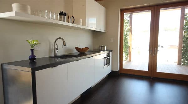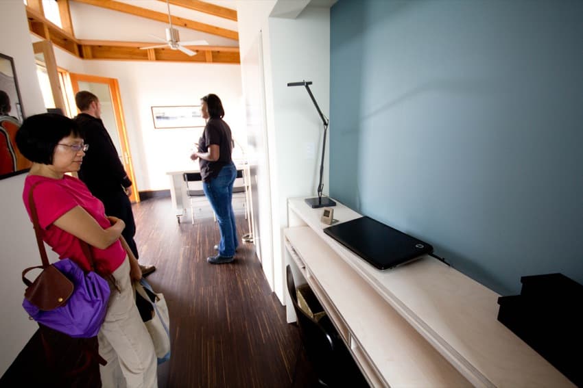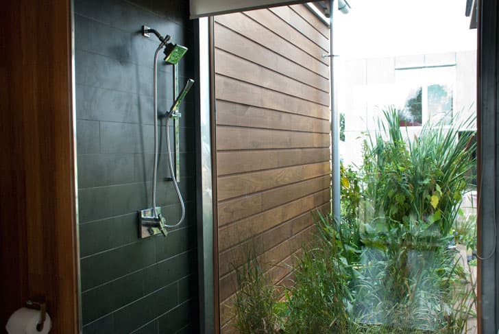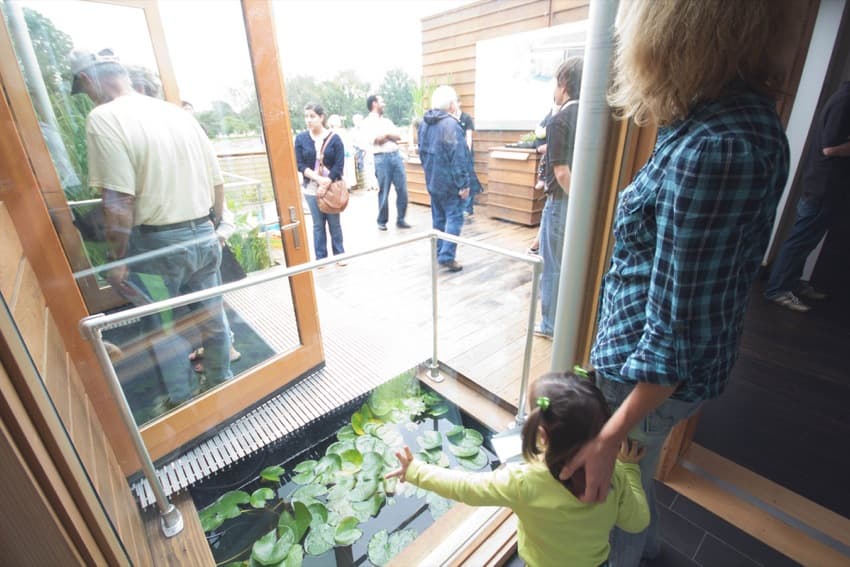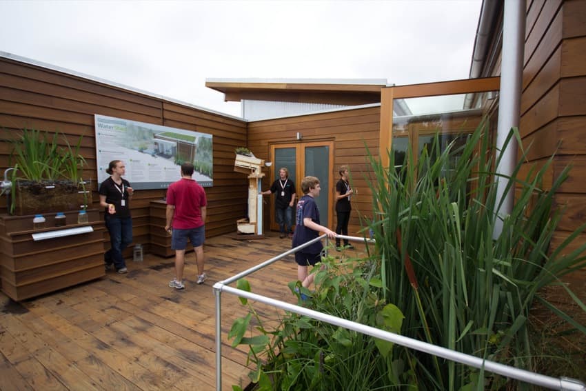 WaterShed cuenta prácticamente con todas las características sostenibles que un edificio autosuficiente debiera tener. Su humedal modular, capaz de filtrar las aguas grises de la ducha, lavadora y lavavajillas, sirvió para crear un paisaje exterior único a la vivienda. Por eso fue toda una atracción en el certamen. Tampoco debemos olvidarnos de su jardín vertical, que ayuda a regular la humedad; ni de su huerto, abonado por la unidad de compostaje existente en el exterior. Recordemos que en el mercado existen pequeños cubos para hacer compost que no huelen.