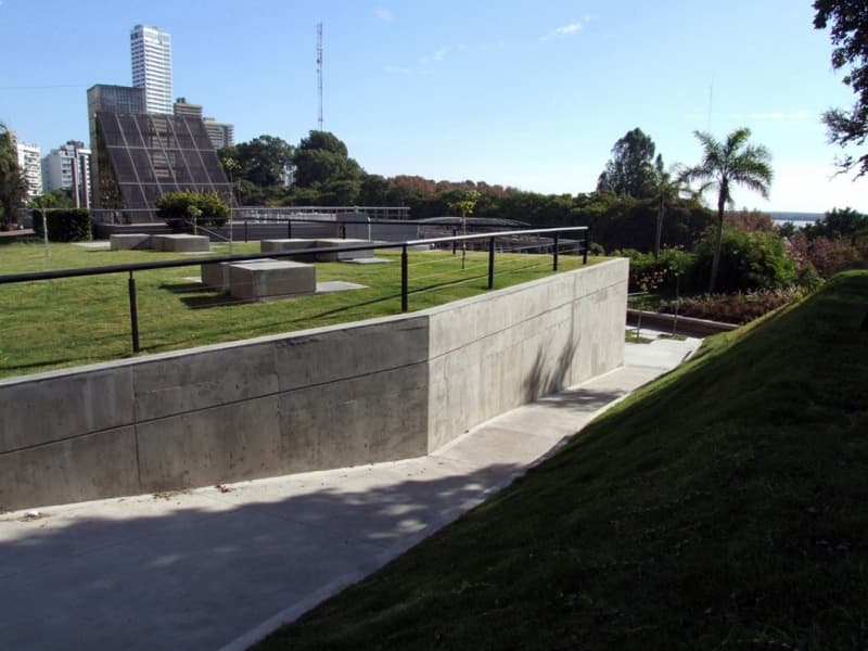 Este proyecto es la segunda fase de remodelación y ampliación de un bar en Rosario (Argentina). Vinculado a él pero independiente, se trata de una obra pública situada en el borde de un parque. La obra resuelve una diferencia de cota interesante, lo que provoca que su cubierta sea tratada como una prolongación de los jardines. Por eso se ejecutó una azotea ajardinada, sin que impidiera las vistas desde la Avenida Libertad hacia el río Paraná.