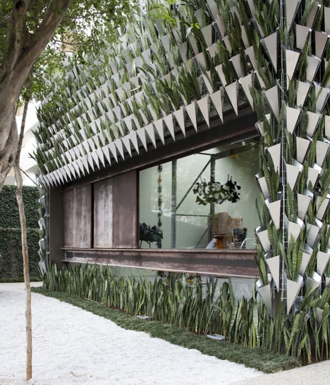 Así quedó la fachada de la tienda de muebles Firma Casa (São Paulo, Brasil) una vez concluida su reforma. Con ella se le quiso dar una actualización más acorde a los tiempo actuales. El punto destacable lo encontramos en sus fachadas, que fueron revestidas con un original sistema para crear un jardín vertical. Esa facha verde está formada por unos 3.500 jarrones con plantas africanas, cubriendo una superficial total de 500 metros cuadrados.