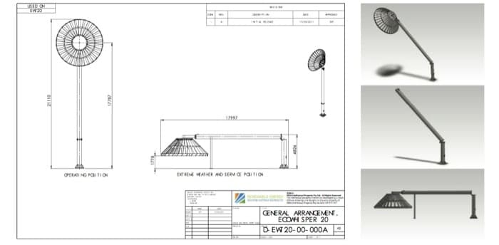 La turbina Eco Whisper fue desarrollada por Renewable Energy Solutions Australia Holdings Ltd. Desafortunadamente en el dominio que conocimos ahora hay otra información. Desconocemos si esta turbina aún se sigue fabricando.