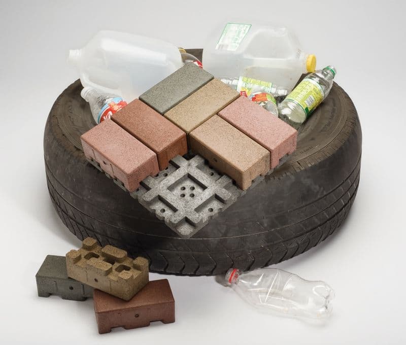 Nos gustan los adoquines que fabrica la compañía AZEK. Principalmente porque entran dentro de ese interesante grupo de materiales conseguidos a partir de desechos del post-consumo. Están fabricados con neumáticos y plásticos reciclados, con un porcentaje muy alto (95%). Los adoquines ecológicos AZEK se venden en dos formatos diferentes (3 x 6, y 4 x 8 pulgadas), e incluso huelen a caucho. Se pueden adquirir en varios colores, y se colocan como si de piezas lego se tratara. Es un pavimento bastante resistente, sobre todo para tráfico peatonal intenso y vehículos rodados de bajo volumen. A diferencia de los adoquines de hormigón, no absorben agua ni se agrietan con las heladas, por eso están garantizados de por vida (para un uso residencial). Son un 30% más ligeros que los de hormigón, y por supuesto 100% reciclables.