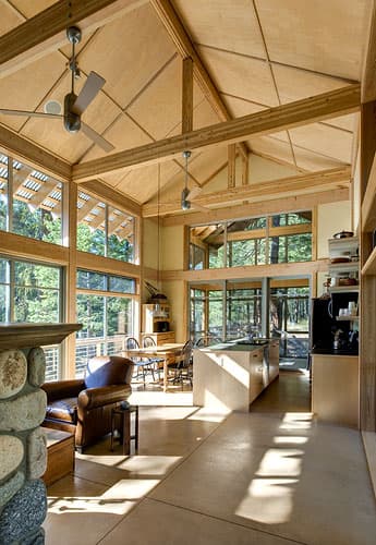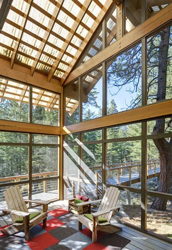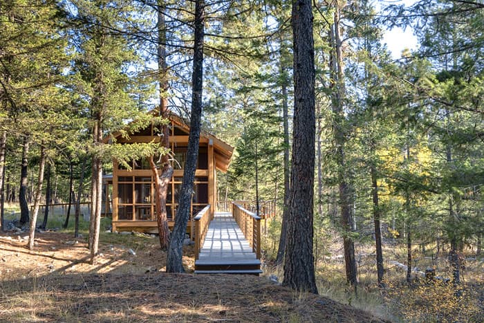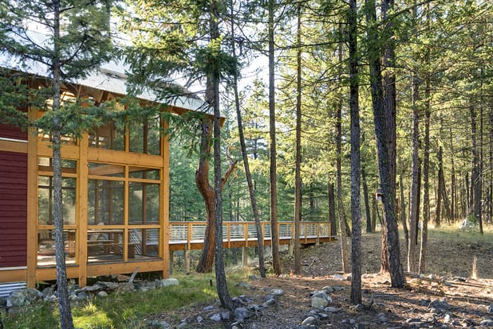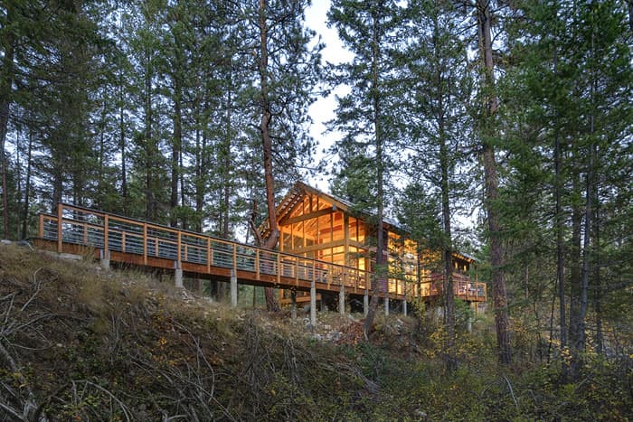 «Construcción de madera, con tejado a dos aguas, y sin muchos lujos,..» esa podría ser la descripción más común para una cabaña. En esta ocasión no se trata de ningún edificio prefabricado, sino de una cabaña de madera pensada para que tuviera poco impacto ambiental. Está situada en un bosque de Mazama, un pequeño pueblo del Valle de Methow, en la parte este del Estado de Washington (EE.UU.). Ese lugar se ubica a pocos kilómetros de la frontera con Canadá.