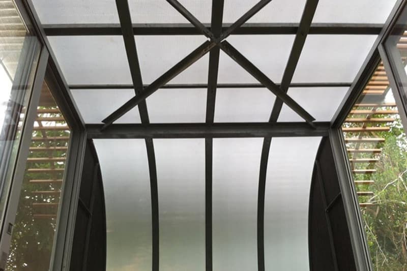 Este artículo es para desvelar más características de la Casa Arco. El conjunto mantiene un sencillo sistema constructivo, formado por perfiles metálicos. Sobre esa base metálica se atornillan unos paneles, algunos de ellos translúcidos (policarbonato). Pero lo mejor de todo es que se puede empaquetar en cajas de 122 x 300 x 91cm. Ese detalle facilita notablemente su transporte, a pesar de ser un módulo de gran envergadura, pues no hay más que fijarse en su escala.