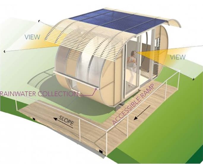 Arc House puede resistir fuertes vientos, y servir como alojamiento temporal para familias afectadas por desastres naturales. Aunque sus cerramientos no están pensados para climas extremos, es un diseño que podría tener una buena salida comercial. Podría servir como caseta prefabricada vinculada al jardín de una vivienda. En su cubierta pueden instalarse unas células fotovoltaicas, además de tener prevista la recogida de aguas pluviales. El vídeo está grabado durante todo el montaje de la caseta.