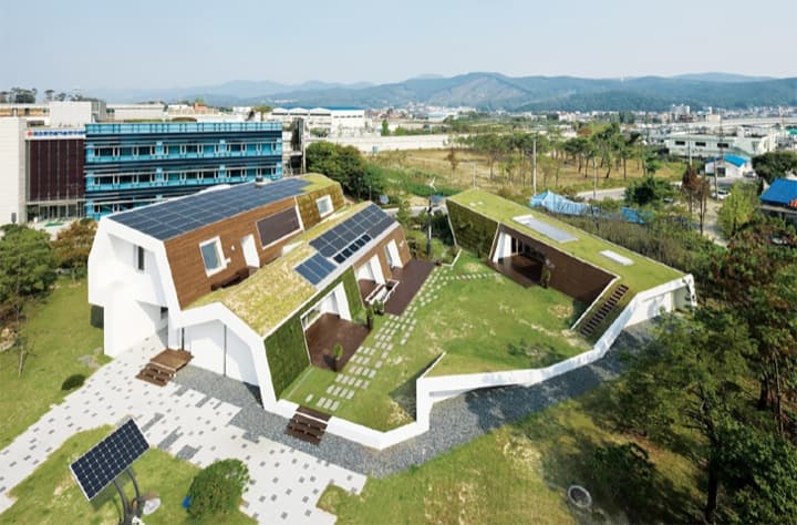 La vivienda sostenible E+ Green Home se creó entre la colaboración de Kolon Engineering & Construction y Unsangdong Architects.