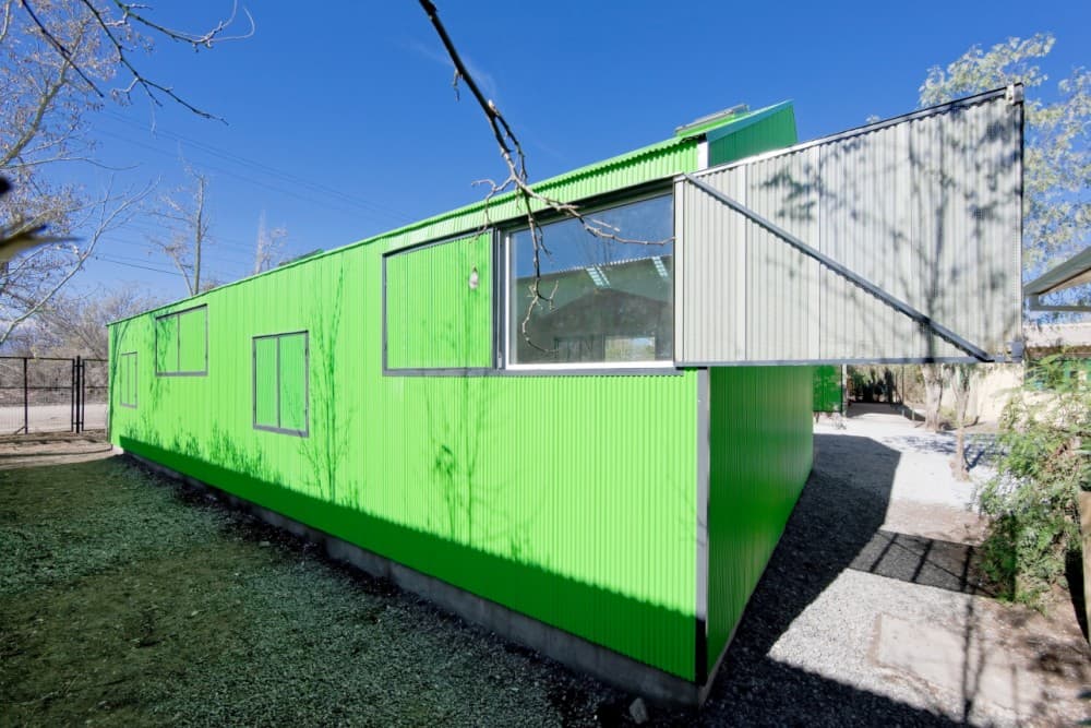 Los módulos prefabricados van formando la escuela, todos ellos en un color exterior bastante llamativo, pero manteniendo un espacio interior luminoso en blanco. Este contraste resultó de lo más interesante.