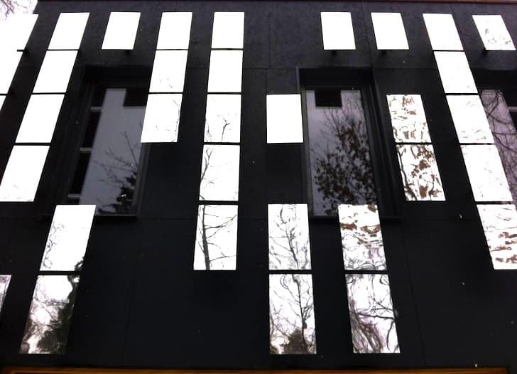 Estamos ante una vivienda de 270m2 que se construyó en dos fases. Primero la zona del piso inferior, de 180m2; más tarde se hizo la planta alta (90m2), que está dividida en dos áreas independientes. Este proceso permitió un ahorro en el coste final, que no superó los $800 por metro cuadrado. Pero el aspecto más llamativo de esta casa se encuentra en su fachada sur, que está compuesta por una trama de espejos. Eso ofrece una textura variable según la hora del día y época del año, que además es de carácter temporal. Para hacer aún más especial, cada ocho años la configuración de la ‘piel exterior’ se modifica, siendo un auténtico acontecimiento familiar.