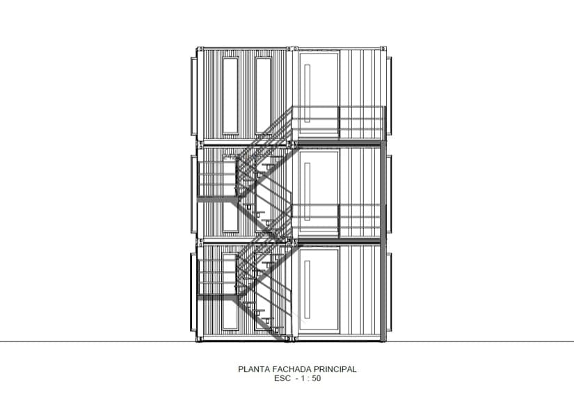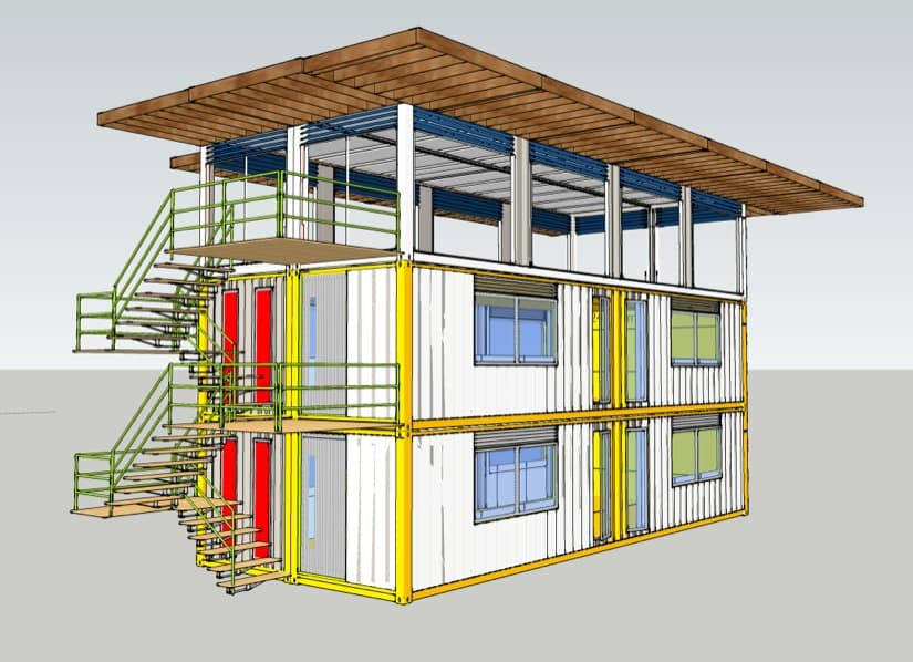 Este proyecto supone un buen ejemplo de construcción realizada con contenedores de carga. Se llevó a cabo en Bogotá (Colombia), para la Universidad Juan N. Corpas, que necesitaba disponer en un corto periodo de tiempo (30 días) de un nuevo edificio de aulas.