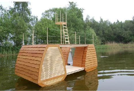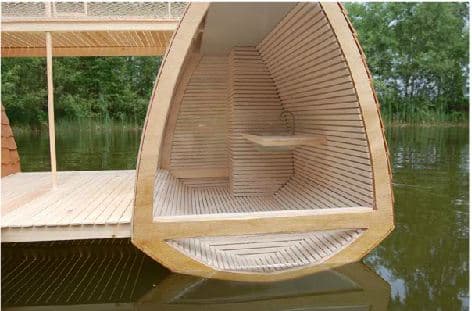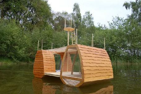 El diseño de este refugio de madera nació para facilitar a sus ocupantes el disfrute e interacción con la naturaleza. Al tratarse de una construcción flotante, su uso se va a realizar desde el medio acuático.