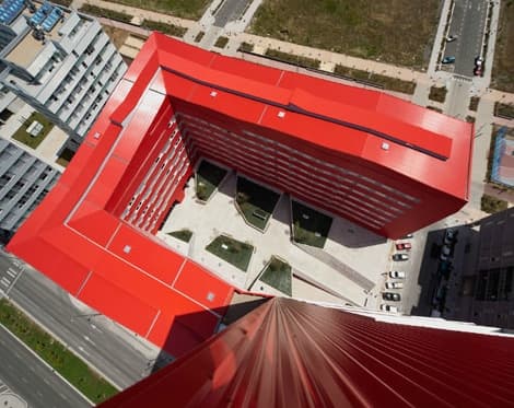 Salburua es un distrito residencial de Vitoria-Gasteiz (España). Allí se localiza un imponente edificio rojo con 242 viviendas sociales, cuya huella de carbono es menor a los de su especie. La clave de este logro consiste en que funciona utilizando la cogeneración. Eso quiere decir que obtiene simultáneamente energía eléctrica y energía térmica útil (agua caliente sanitaria).