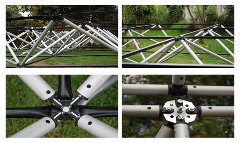Esta casa de emergencia fue creada por DIA, una organización basada en principios de solidaridad y humanidad. Cuenta con una estructura espacial triangulada que se apoya en cuatro puntos (no precisa de cimentación). Eso es suficiente para mantener un habitáculo (c0n piso de madera) a un metro del suelo. Tiene capacidad para acoger a una familia de 6 a 8 miembros (20m2). Dispone de cocina, dormitorio con literas, y cuarto de baño con inodoro y ducha. La protección está realizada con material textil de doble capa impermeable, que tiene cámara para aislamiento térmico.