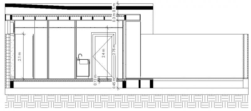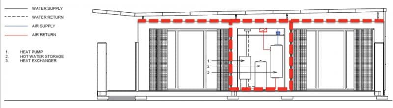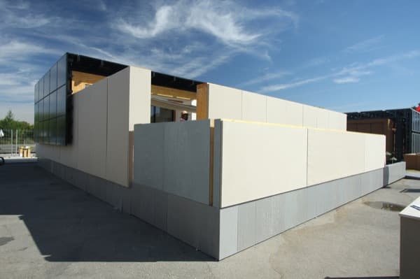 - Rápida. La reducción de los tiempos de construcción se logran mediante métodos prefabricados, reduciendo costes, y mejorando la calidad. Por ese motivo se ha incorporado un módulo prefabricado que contiene la cocina y cuarto de baño. Incluye además los aparatos de climatización y producción de agua caliente sanitaria. La prefabricación contempla todo el cableado, tuberías, y sistema dinámico de intercambio de calor. Esto hace que el resto de la casa esté libre de instalaciones, a excepción de la cubierta técnica, que contiene el sistema fotovoltaico y luminotécnico.