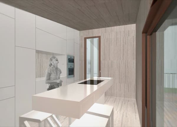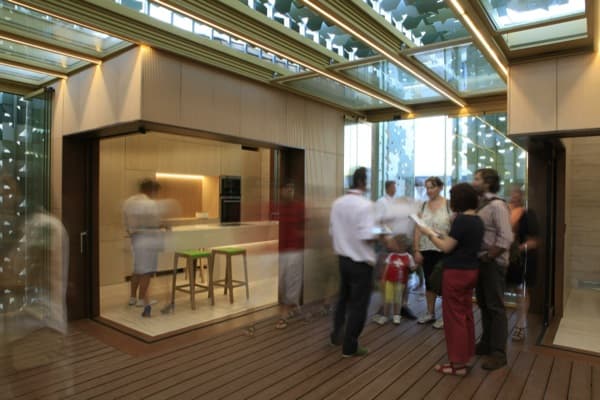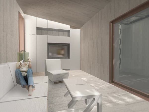 Se trata por tanto de unos ‘kit de espacios’ que combinan diferentes funciones domésticas. Uno de ellos puede contener la cocina y el comedor; otro puede ser una habitación multifuncional que sea dormitorio, lugar de trabajo; también puede incluir un armario y el cuarto de baño. El cliente formaría su casa agrupando diferentes módulos alrededor de un espacio central (el patio). Se esa manera organizaría una vivienda sin tabiques, pero con las funciones perfectamente definidas y repartidas, justo las que necesitase para su familia.