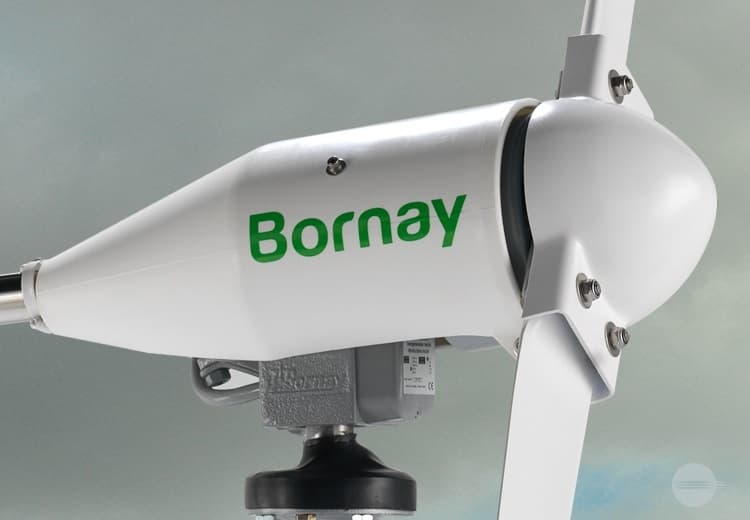 Puede haber más información en la web de Bornay. Esta empresa se creó en 1970 con el afán de Juan Bornay por llevar electricidad a la casa de sus abuelos. Surgieron después los primeros clientes (amigos y conocidos), con instalaciones a medida. No fue hasta la década de los años 80 cuando la compañía empezó a exportar, produciéndose en serie el aerogenerador G200W. Hoy esta marca fabrica cinco modelos (600, 800, 1500, 3000 y 6000W), además de elementos que complementan este tipo de instalaciones. Su sede está en España, en unas instalaciones que se abastecen de energías renovables (minieólica y solar). Distribuye sus aerogeneradores a cualquier lugar del mundo en 24-48 horas.