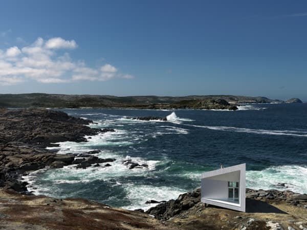 Este proyecto se incluye en la serie de estudios para artistas, realizados por el arquitecto Todd Saunders. Como el resto, se ubica en la isla de Fogo (Canadá), pero preservando las tradiciones de los isleños. Al mismo tiempo promueve el rejuvenecimiento de la zona mediante las artes y la cultura. Este moderno refugio está sobre unas rocas, a las afueras del poblado de Tilting (en la costa este de Fogo).