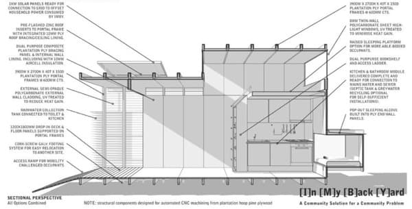 Este galardón lo consiguió Elena Ardighieri, de la Universidad Aalborg de Dinamarca. Propuso una arquitectura prefabricada para servir de alojamiento a jóvenes trabajadores temporeros, personas mayores, o simplemente gente sin vivienda. Para ello utiliza módulos compactos que bien pueden caber en el patio trasero de muchas viviendas; también para crear campamentos en zonas de gran demanda. A pesar de que estas pequeñas casas prefabricadas llevarían integrados paneles solares, suponen una solución de baja tecnología. Ayudan a la integración de la parte más vulnerable de la sociedad. Nótese que en esta idea la cama puede ir situada en un altillo.