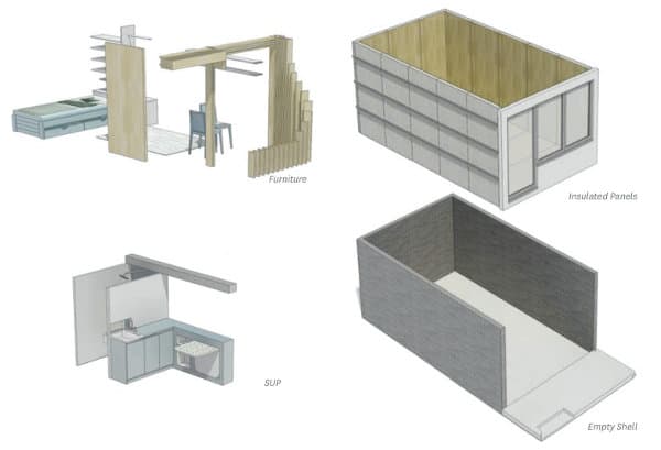 Estos prototipos de casas prefabricadas salieron del concurso HOME, organizado por Building Trust International. Se creó para buscar soluciones que sirvieran de hogar seguro a las personas sin techo de las grandes ciudades. También para que se pudieran fabricar con un presupuesto inferior a las 20.000£ (24.864€). Se presentaron más de 450 propuestas para 50 ciudades de todo el mundo, de más de 20 países.