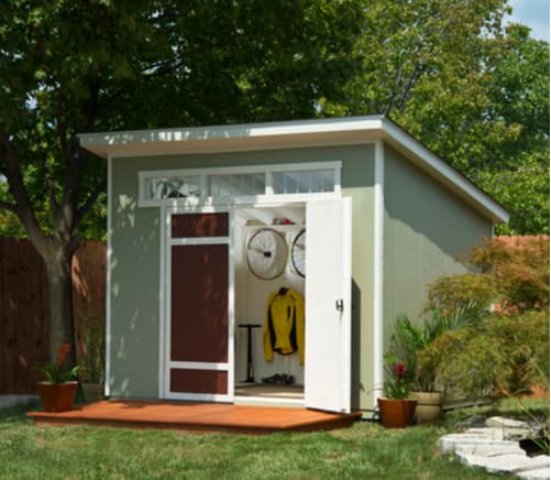Teniendo espacio en el jardín, es posible utilizarlo para colocar alguna de las muchas casetas prefabricadas que existen en el mercado. Así se puede tener un sitio donde guardar herramientas y utensilios de jardinería; o utilizarlo como una habitación más (trabajar, relajarse,…). El modelo Aston es un cobertizo de madera con un estilo parecido a los que fabricaba Cabin Fever. Tiene unas dimensiones de 3,05 x 2,29 metros, y una ventana longitudinal justo encima de su entrada.