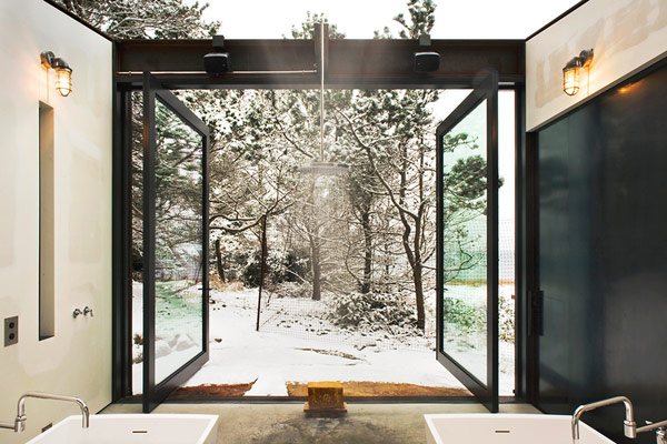 Ésta es otra de esas encantadoras y modernas casas de campo diseñadas por el arquitecto Olson Kundig. Se llama Shadowboxx, y está escondida en el claro de un bosque de Islas San Juan (Washington, EE.UU.). Es un edificio de una planta en el que deliberadamente se han confundido sus límites con los alrededores. Tiene un revestimiento exterior que irá oxidándose con el paso del tiempo. Además se diseñó siguiendo una composición modular, con puertas que permiten deferentes configuraciones.