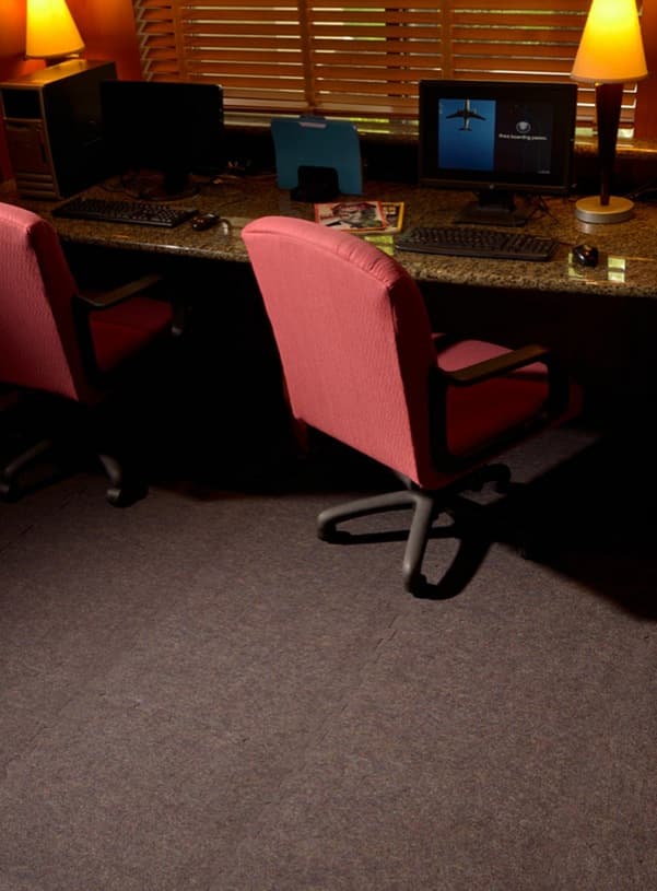 Pensando en pavimentos de rápido montaje, y que tengan características sostenibles, hemos encontrado unos tipos de suelos que parecen moquetas. Son las baldosas de suelo ECORE, fabricadas según la tecnología Itstru (pendiente de patente). Estas losetas de caucho están hechas a partir de neumáticos y botellas de plástico (PET) reciclados. En total contienen un 95% de material reciclado, sin PVC ni compuestos orgánicos volátiles (COV).