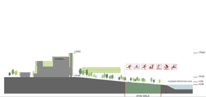 Para el parque se emplearon especies arbóreas autóctonas, colocando las de mayor altura primero, y las más bajas más alejadas de la central eléctrica. Según estos renders, el resultado final promete bastante.