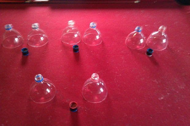 - Botellas de plástico vacías de 2 litros, y sus tapones.
