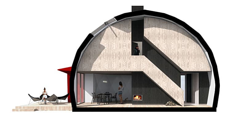 DOM(E) es un diseño de vivienda prefabricada válida para todas las estaciones, y pensada para funcionar desconectada de la red. Se puede desmontar con facilidad, es duradera, y está hecha con materiales ecológicos. Además, tiene un coste menor al de una casa convencional.