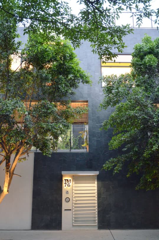 La vivienda CorManca está en una parcela de 12 x 13 metros de la Ciudad de México.  Tiene tres pisos de altura, pero sin superficie suficiente para desarrollar un patio abierto con vegetación. Por ese motivo el espacio vacío interior está presidido por una estupenda pared de jardín vertical, con más de 4 mil plantas. Este muro verde ayuda a mejorar la calidad del aire, y a regular el grado de confort del patio (temperatura y humedad).