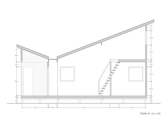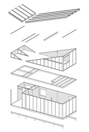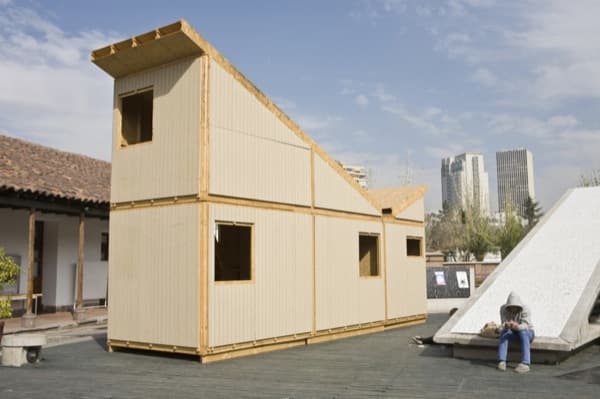 Esta casa prefabricada es un proyecto de John Saffery Gubbins. Se hizo en colaboración con ChileMaderas y LP Chile, que donaron maderas de pino, tableros OSB, y Smart Side Panel.