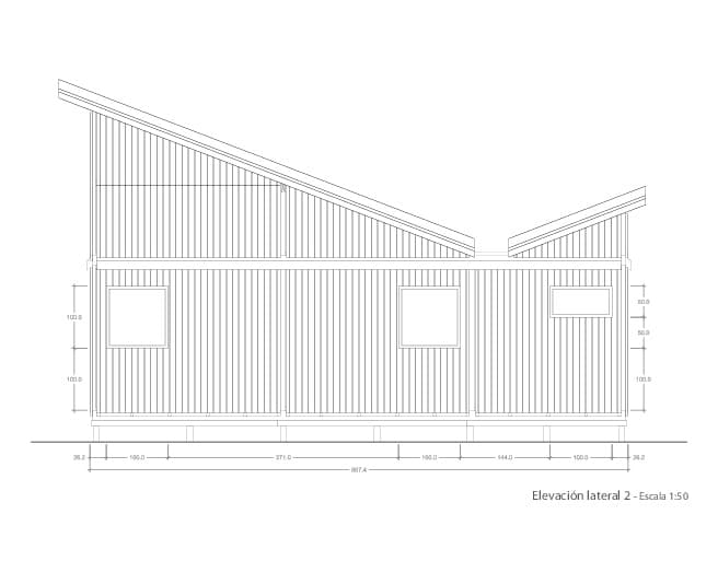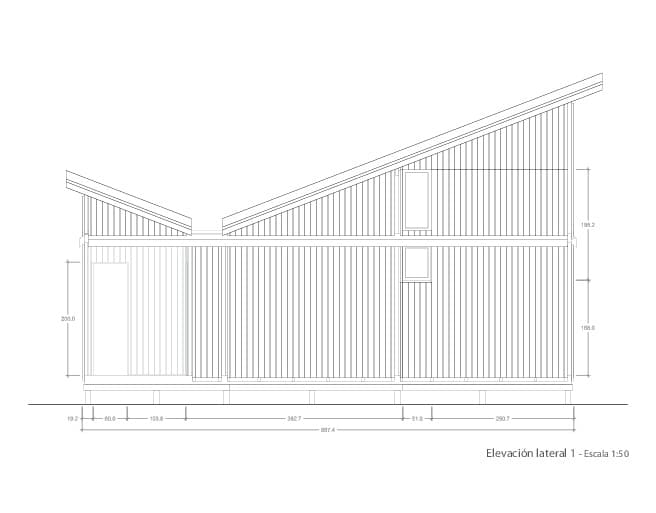 Estas fotos y planos son de VED, un prototipo para casa de emergencia exhibido en Providencia (Santiago, Chile). Se trata de una casa prefabricada construida en taller en menos de dos meses, y montada en el sitio en tan solo día y medio (ver vídeo timelapse inferior). En Latinoamérica, decir mediagua es sinónimo de vivienda de emergencia. Es un término que tiene sus raíces en organizaciones no gubernamentales, como la Fundación Vivienda. Este proyecto se desarrolló de la misma manera que un trabajo de investigación, tomando como punto de partida la temporalidad. Y es que este tipo de construcciones se acaban utilizando más tiempo del que originalmente se establece.