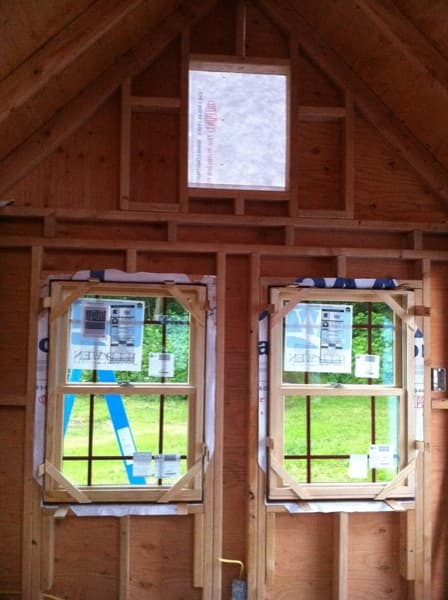 Otra de las sorpresas de este proyecto es la cantidad de luz natural de su interior, conseguido con un total de 12 ventanas (!). Una de ellas está en el tejado de la sala de estar. Como se puede ver en algunas de las fotos tomadas durante su construcción, se utilizó lana natural como material aislante. La energía eléctrica se consigue de unos paneles fotovoltaicos situados en el jardín, mientras que para cocinar se ha optado por gas propano.