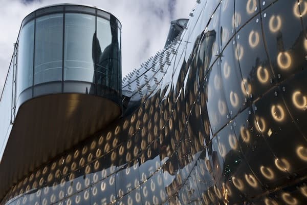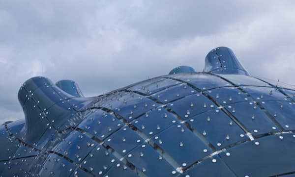 El Museo de Arte Moderno y Contemporáneo de Graz (Austria) se inauguró en el 2003. En ese año la ciudad fue declarada Capital Cultural Europea. En nuestro blog de Arquitectura, le dedicamos en su día una extensa página a este moderno edificio con aspecto de burbuja deformada. Esa motivación llegó por el espectacular trabajo de «media-arquitectura» (BIX) que en él realizó el equipo alemán de Realities:United. Pero además de su revestimiento con 1.288 paneles de material acrílico semitransparente, es importante señalar que esta estructura cuenta con una potente instalación de paneles fotovoltaicos integrada.