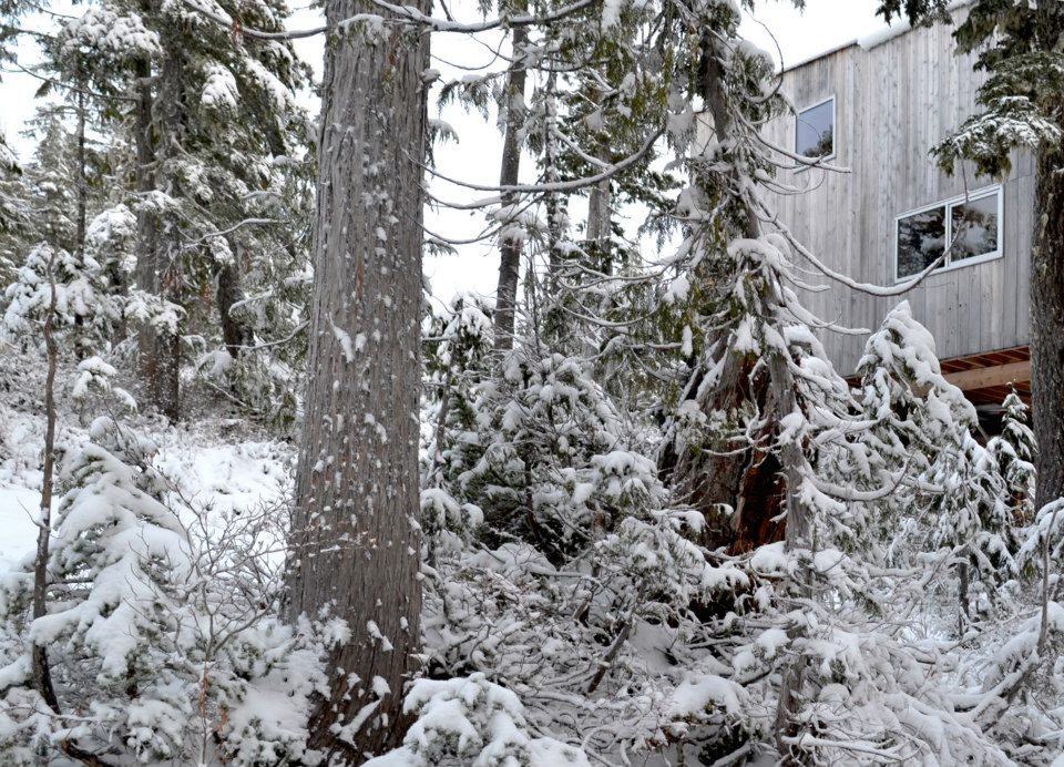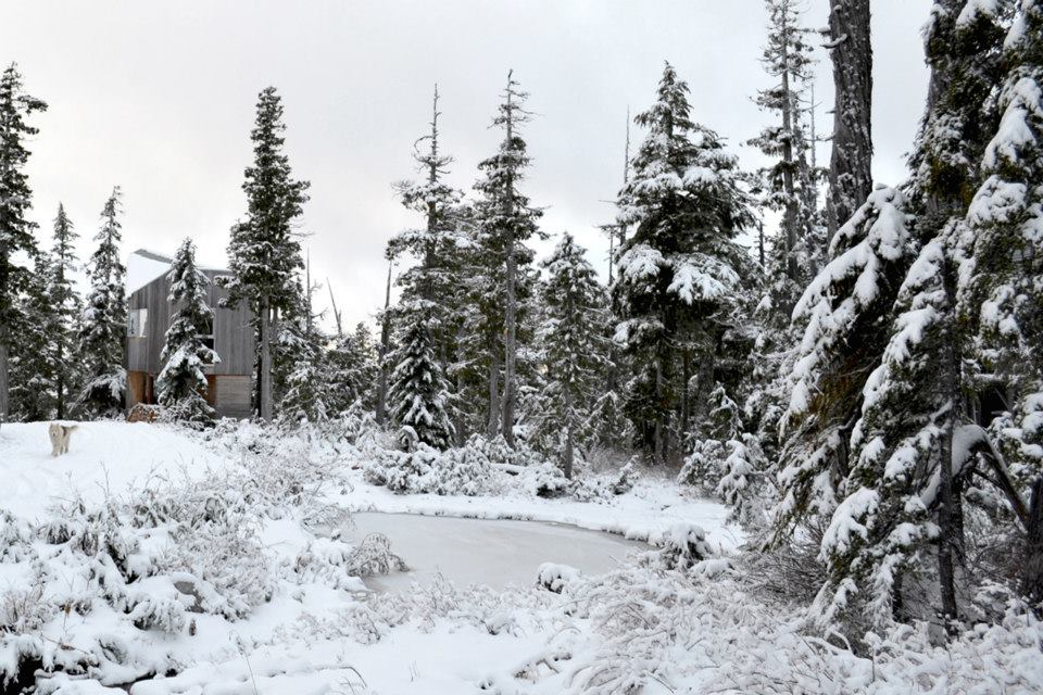 Esta cabaña de madera se construyó en una zona de recreo alpino, situada a 1.300 metros de altitud. Está en la Isla de Vancouver (Canadá), y es accesible por un camino de grava durante 5 meses. El resto del año solo se puede acceder a ella por trineo. Este refugio debía servir de refugio durante la práctica del snowboard, alterando lo menos posible el lugar. Por eso está levantado del terreno, y soportado por seis troncos que atraviesan las dos plantas de la cabaña. Esta disposición es suficientemente segura para soportar la carga de nieve, resistir los vientos dominantes, y garantizar que su acceso quede libre con las fuertes nevadas.