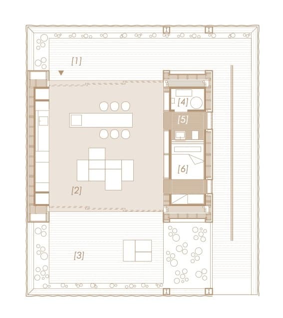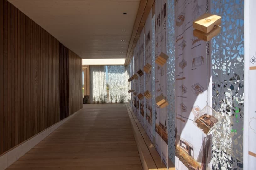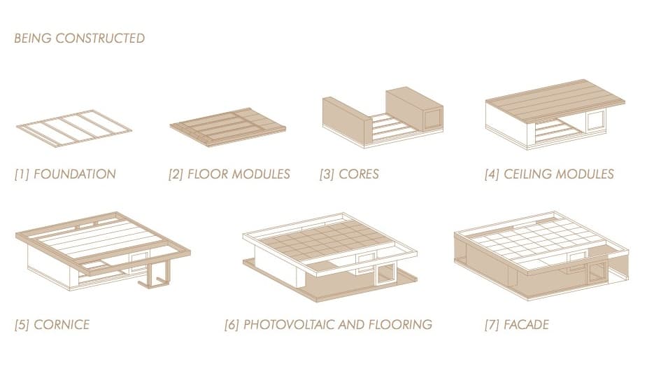 No lo hemos mencionado aún, pero lo de LISI viene por «Living Inspired by Sustainable Innovation». Se hace hincapié en que se trata de un edificio prefabricado de madera; también nos recuerda que la madera es un material 100% natural, de carbono neutral. En este sentido, el uso que se hace de este material en el proyecto nos parece espléndido. La estructura está compuesta por varios módulos, marcándose con claridad sus tres zonas: patios, espacio central, y núcleo de servicios.