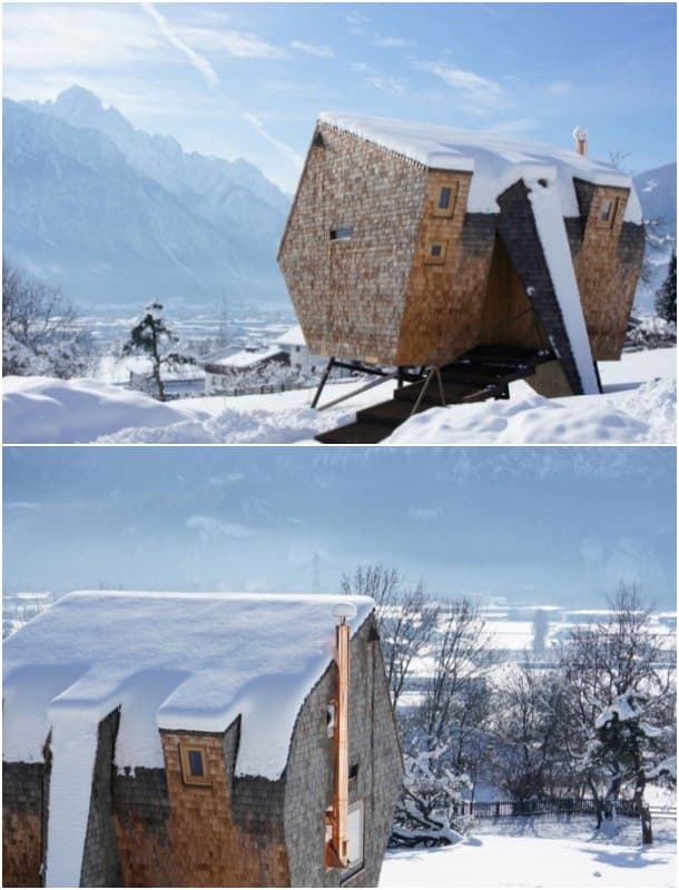 Ufogel es una casa de alojamiento rural situada en el Tirol Oriental (Austria). Se presentó como una escultura construida casi en su totalidad en madera de alerce, y que está levantada del terreno por un conjunto de delgados soportes. Tiene unos 45m2 de espacio funcional, distribuido en varias plataformas a distintos niveles. Apenas posee particiones intermedias, siendo por tanto un ejemplo bastante singular de vivienda en madera de reducido tamaño.